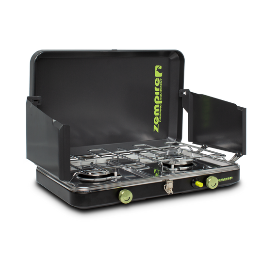 Our portable and easy-to-use 2 Burner DLX Stove features 2x high powered burners to feed hungry campers quickly. Includes a stove regulator with 1/4" NPT gas fitting to easily attach a separate propane canister. Equipped with feet to provide stability while cooking, along with a foldable windshields which save gas and keeps flames hot. Cleaning up is also made easy with a removable stainless steel pot rack. Tested in the remote campsites of New Zealand, our 2 Burner DLX Stove is your convenient and reliable companion for cooking in the great outdoors.