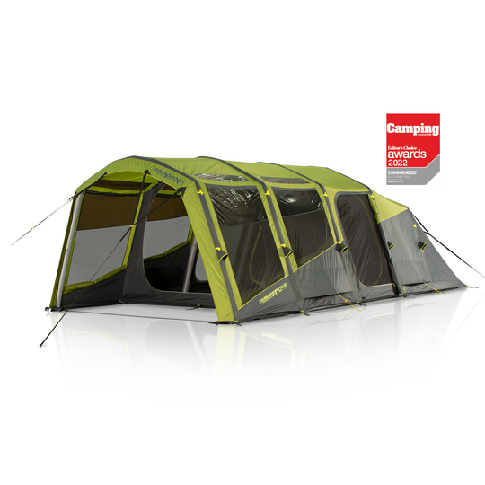 Winner of a highly commended award at the 2022 Camping Magazine Awards, our Evo TL V2 has been carefully crafted for comfort and flexibility. With a spacious full head-height living area, large front awning area, and versatile Multi-Room bedroom system, this popular air tent is sure to also be a winner with families and small groups. The size, layout and inflatable airframe make it a perfect set-up for longer holidays with a small family with the additional options of linking to an Aerobase 3 Shelter for even more outdoor living space.