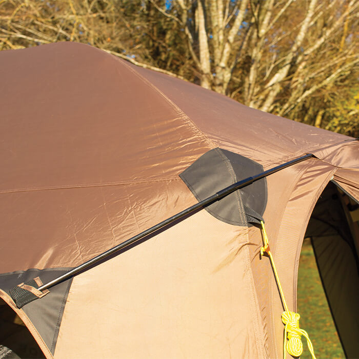 • It is important that lower vents are opened at all times to reduce condensation. During humid or damp conditions, it is recommended that the waterproof door covers are opened to expose the mesh layer, enabling additional airflow throughout your tent.